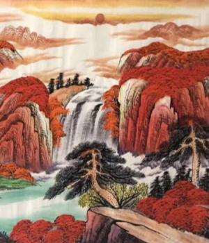 本商品不在线出售,有意向电话咨询 鸿运当头系列作品为郭友华大师创作的帝王风水画,每一幅作品都不相同,是画家将风水学构图以国画的形式创作出一幅幅精品画卷展示给人们。一:漫山遍野的红叶象征着鸿运当头、数棵青松矗立在湖水旁象征青山绿水江山永固,延绵的山脉似一条巨龙飞跃而起,寓意事业蒸蒸日上,飞黄腾达!二:山间瀑布川流不息,寓意财源滚滚永不间断。整个画面如同聚宝盆一样,财源聚集在身边!三:青绿的草地既能起到画龙点睛的作用,又有基业长青的意思。