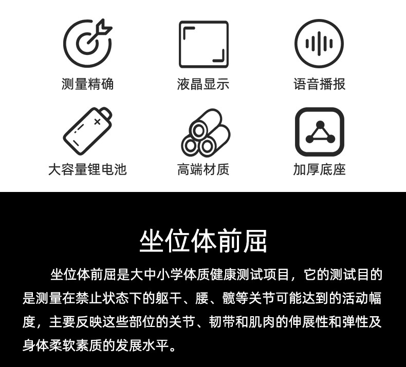坐位体前屈测试仪体育中考高考电子测试器材学校中小学生体质健康测试仪韧度测试仪 升级款电子坐位体前屈测试仪 商品毛重:100.00g 商品产地:中国大陆 货号:BZZWTQQ 类别:其他