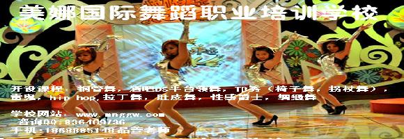 美娜国际舞蹈职业培训学院,开设钢管舞培训、DS平台领舞、钢管舞教练培训、Hip-Hop、雷鬼爵士、艳秀、模特、绸缎舞、拉丁舞、肚皮舞等课程。全国统一信赖的教学方式!专业班和教练班终身免费进修、多家连锁店可免费转校! 美娜国际舞蹈职业培训 广州市唯一具有职业模特培训资质的模特单位。拥有标准模特训练大厅和相关设施,师资力量雄厚,教学理念先进,发现和培养了一大批极富潜质的模特新星,并成功的推出了众多享誉海内外的中国优秀职业模特,被誉为"制造名模的摇篮"。 本着"培养新人、推出新人"的宗旨;以"权威任教、名模示范、理论与实践相结合"为手段,华翎职业模特培训将通过系统的教学,使学员掌握模特职业所涵盖的一系列技能,包括服饰理论、形象设计、营养形体、艺术修养、表演技能、个人形象发展等在内的一系列激发潜质的课程 美娜国际舞蹈职业培训学校,开设课程:钢管舞,酒吧DS平台领舞,TB秀(椅子舞,拐杖舞),雷鬼,hip-hop,拉丁舞,肚皮舞,性感爵士,绸缎舞
